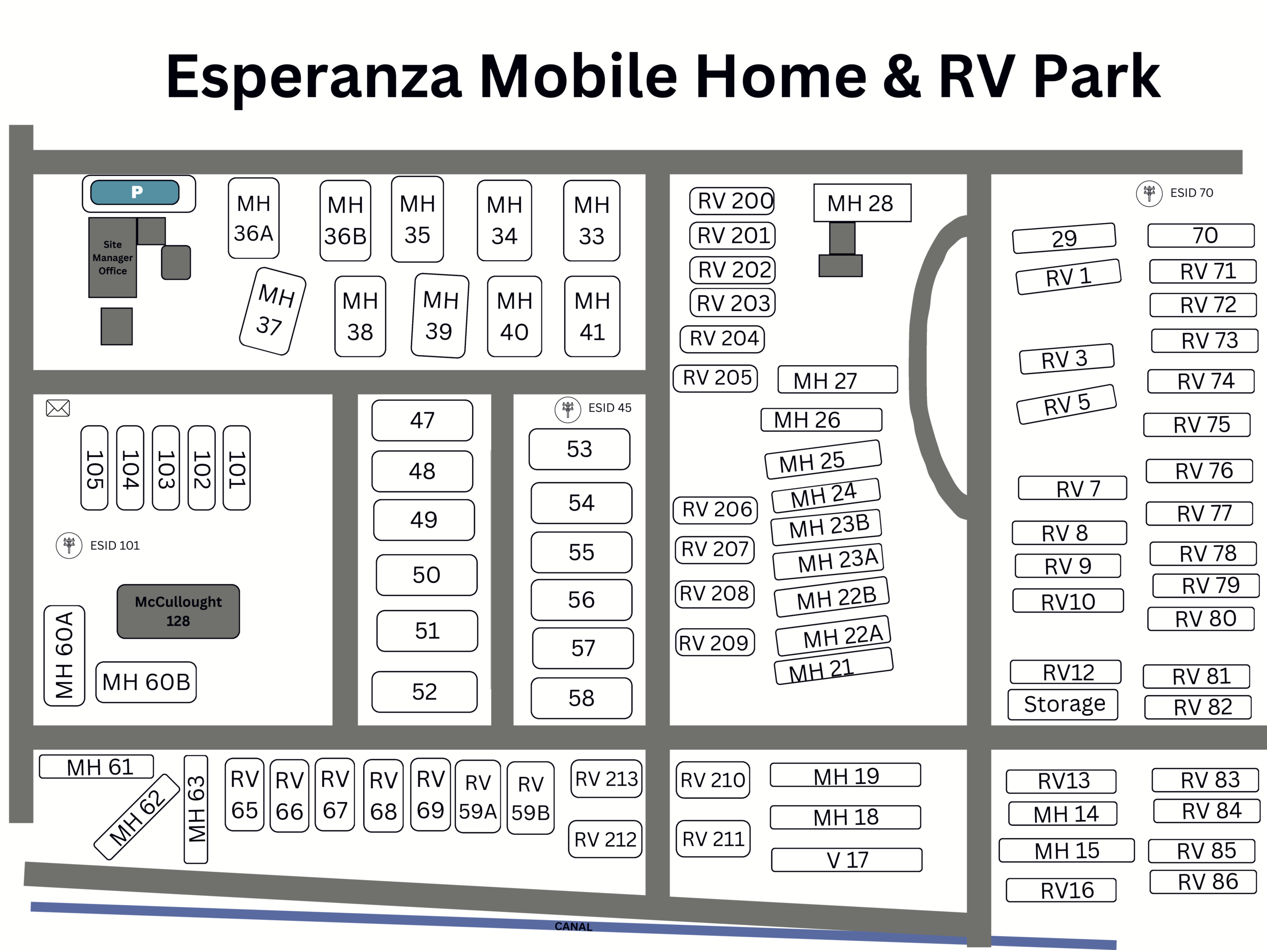 Esperanza Park is a professionally managed mobile home and RV community in San Benito, Texas. The community offers structured lot layouts, reliable infrastructure, and convenient access to schools, employers, and major roadways.
